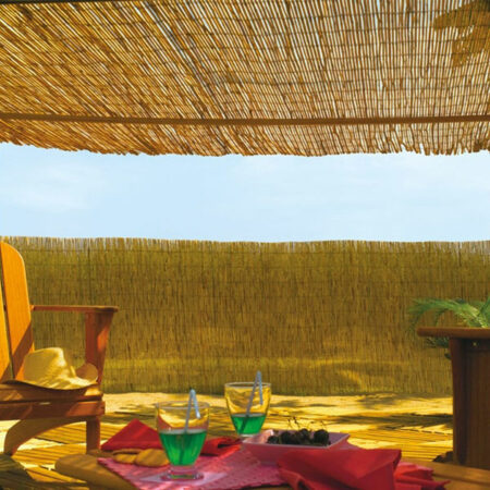 Producto natural seleccionado por su gran resistencia, que garantiza la intimidad necesaria en zonas como terraza, jardín y piscina. Tejido con alambre galvanizado.